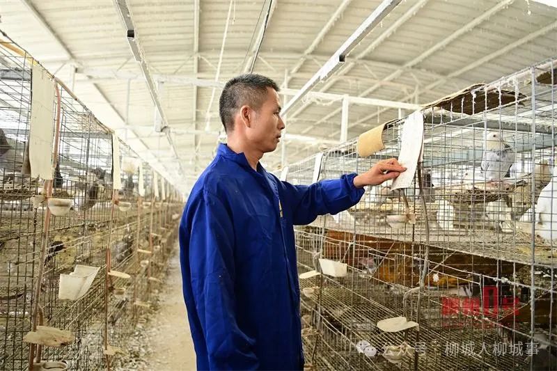 5月15日,在柳城縣古砦仫佬族鄉(xiāng)肉鴿產(chǎn)業(yè)園的養(yǎng)殖大棚里,陸礎(chǔ)成正站在整齊排列的鴿籠前,認(rèn)真地查看肉鴿的生長(zhǎng)情況,鴿子“咕、咕、咕”地叫著,聽(tīng)起來(lái)就如同陸礎(chǔ)成帶領(lǐng)村民養(yǎng)鴿致富唱響的“鴿”聲。