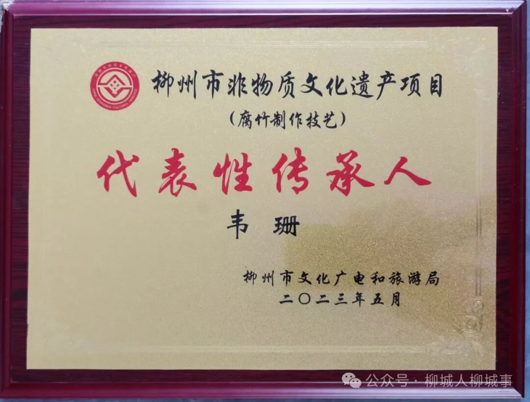 每一片腐竹都傳遞了傳統(tǒng)工藝的獨(dú)到與價值,每一道工序也都凝聚著手工匠人的心血與智慧。2023年10月,柳城客家腐竹制作技藝被列入自治區(qū)級非物質(zhì)文化遺產(chǎn)。同年,企業(yè)榮獲第三屆廣西農(nóng)民工創(chuàng)業(yè)大賽柳州市選拔賽創(chuàng)業(yè)明星組一等獎、第三屆廣西農(nóng)民工創(chuàng)業(yè)大賽明星組三等獎;韋珊被評為柳州市非物質(zhì)文化遺產(chǎn)項(xiàng)目(腐竹制作技藝)代表性傳承人。今年以來,韋珊又獲評第一屆柳城縣“十佳返鄉(xiāng)創(chuàng)業(yè)農(nóng)民工” 及柳州市鄉(xiāng)村工匠等榮譽(yù)稱號。