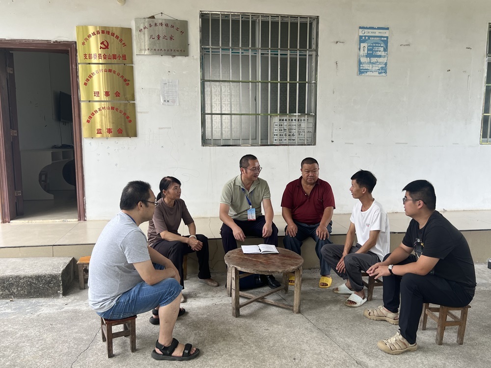 、鎮(zhèn)人大代表、寨隆社區(qū)村務(wù)監(jiān)督委員會委員在寨隆社區(qū)百姓心語議事平臺收集研討環(huán)境安全隱患問題