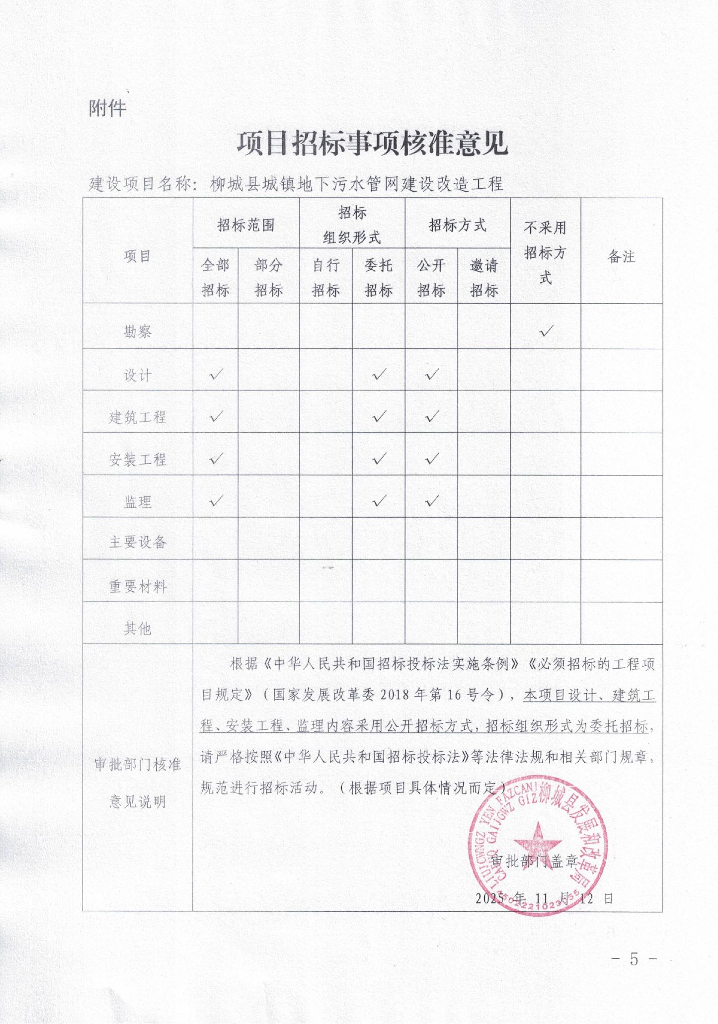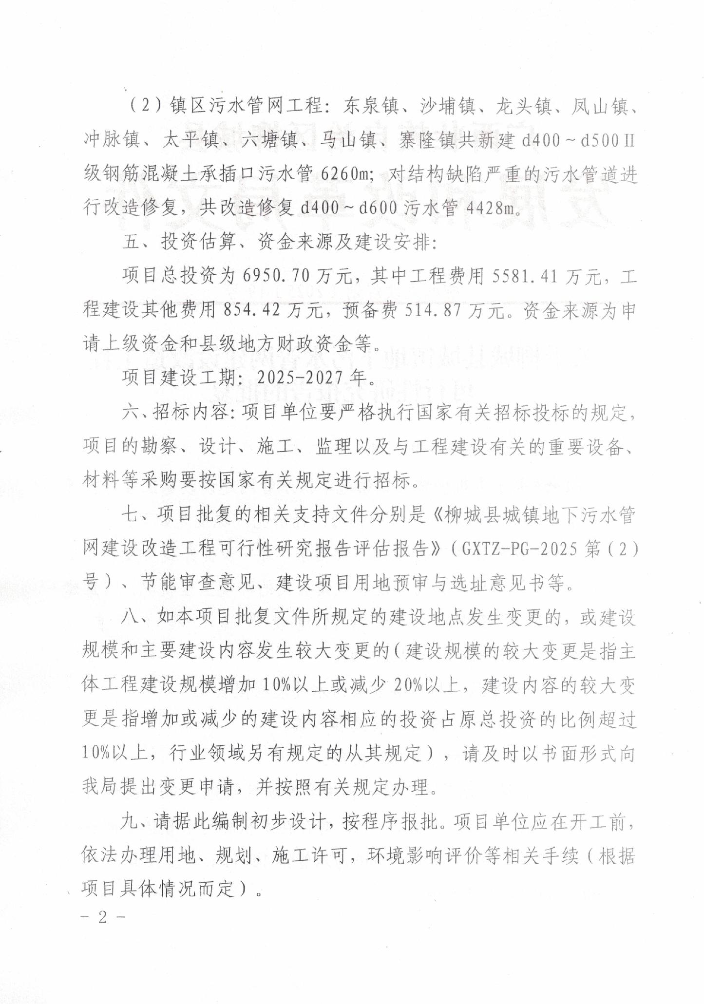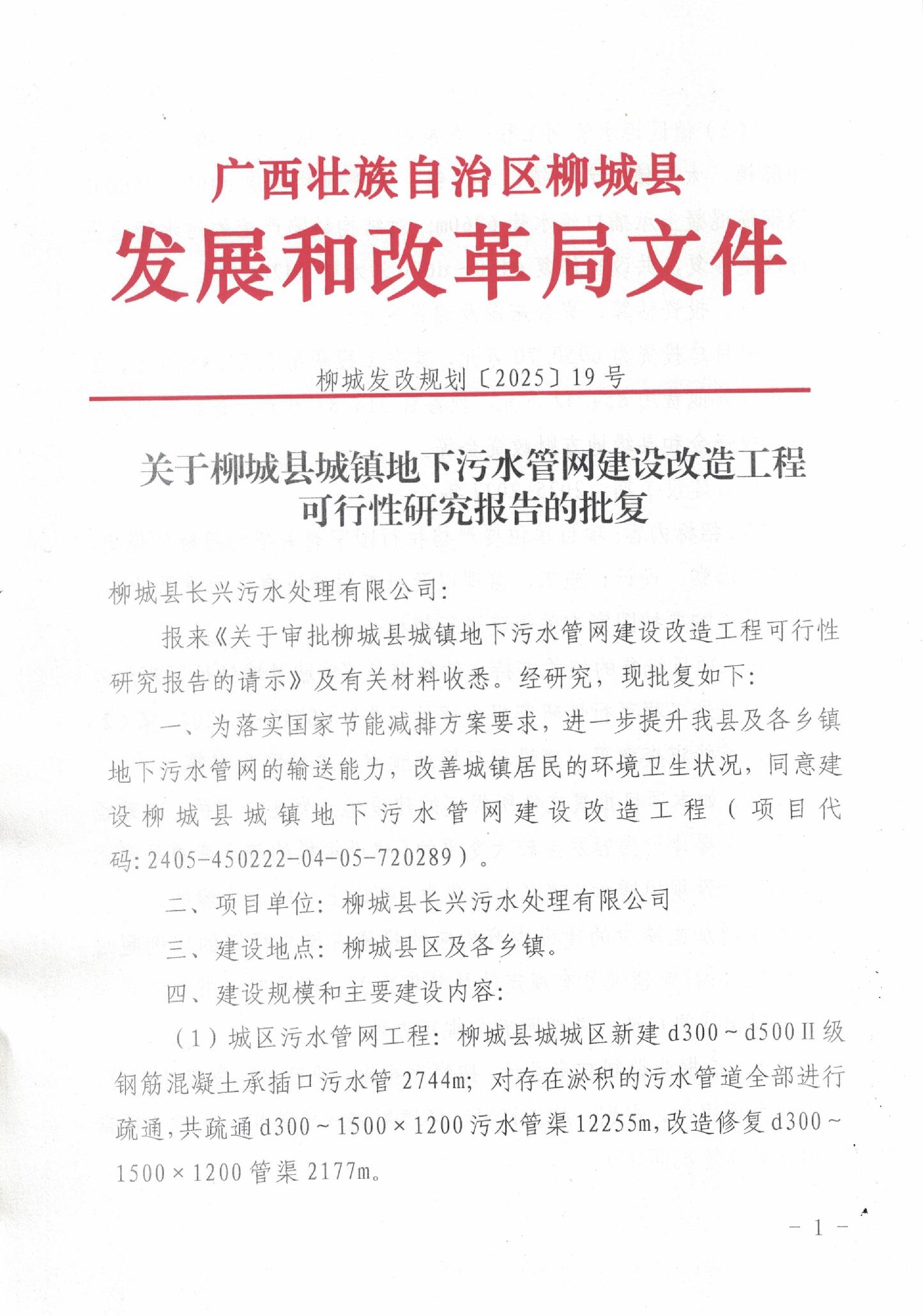 關(guān)于柳城縣城鎮(zhèn)地下污水管網(wǎng)建設(shè)改造工程可行性研究報告的批復(fù)